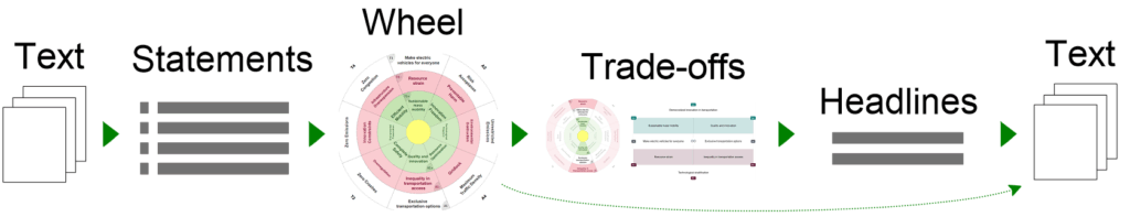You drop a mission, line, or script. Eye-Opener builds a Dialectical Wheel that pairs your promise with its shadow, surfaces the positive side of the opposition, and flags hidden trade-offs—so you can anticipate pushback and pick a counter-metric you’ll report.