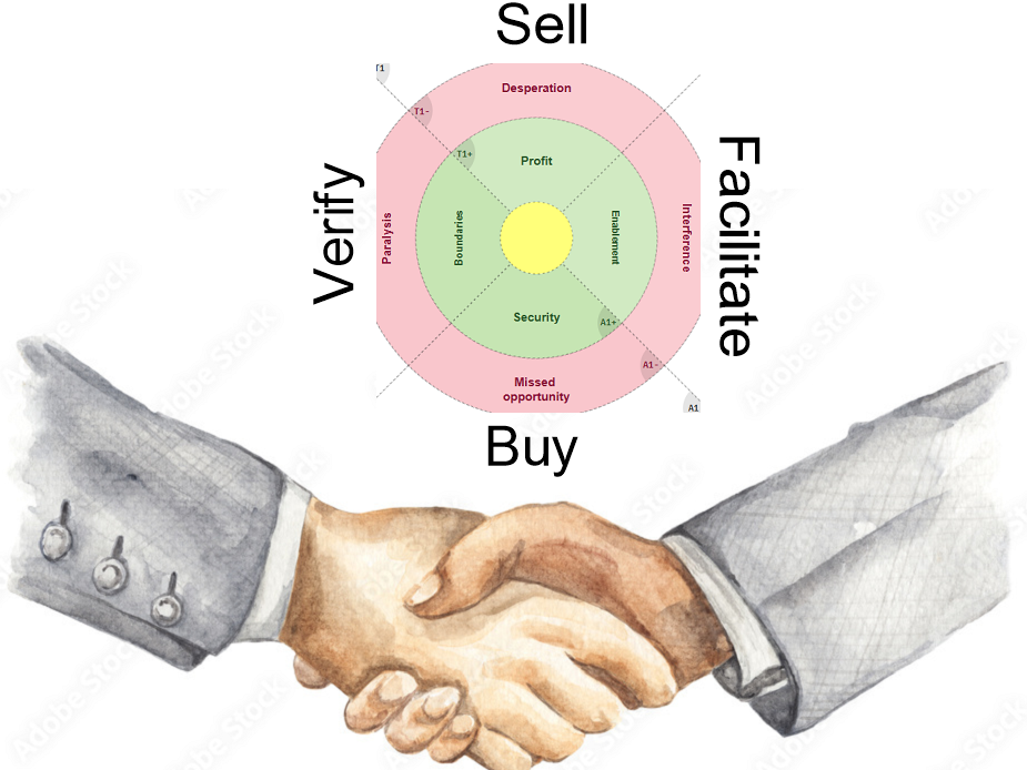 Vendor offers T₁ that satisfies A⁺₂; Buyer offers T₂ that satisfies A⁺₁ (each side’s thesis meets the other’s constructive need). An SI Partner (a services firm like Accenture, or a single Advocate/Facilitator) provides Action/Reflection by converting over-rotations: T⁻₁ → A⁺₂ and T⁻₂ → A⁺₁. If only one conversion is covered, add a counter-advocate or second facilitator to restore symmetry. This works from large M&A and industrial projects down to small roundtables (e.g., vendor PM + buyer lead + independent advocate): the advocate designs lightweight proofs/guardrails and decision rituals so both sides’ positives can synthesize.